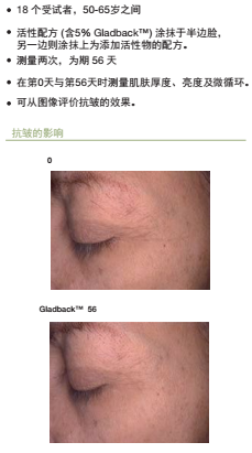 針對成熟肌膚的多功效活性物;提高皮膚光澤度,增加厚度,改善微循環,減少皺紋