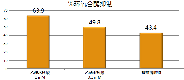 與作(zuò)為(wèi)對照 的乙酰 水楊酸 (0.1mM)相比,柳樹提取物有顯著的環氧合酶抑制作(zuò)用,有很好(hǎo)(hǎo)的抗刺激作(zuò)用