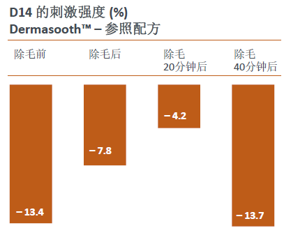 Dermasooth™ 40 分(fēn)鍾後,降低(dī)刺 激強度達 13.7%