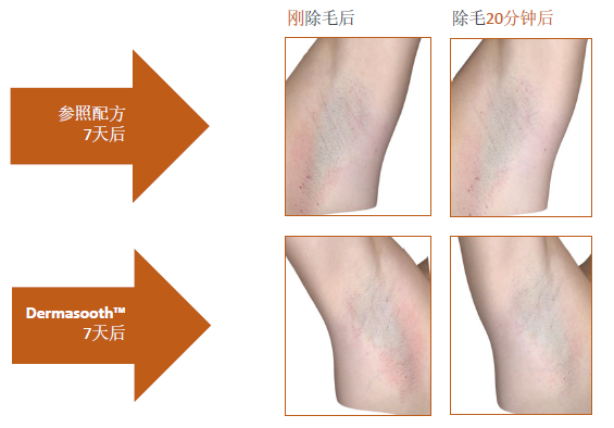 我們用腋下(xià)除毛模拟了(le)外界機械損傷對皮膚造成的傷害,發現(xiàn)Dermasooth能(néng)夠改善腋下(xià)紅(hóng)腫情況,減小紅(hóng)腫面積