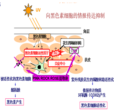 PINK ROCKROSE EXTRACT抑制黑色素細胞的活化(huà),抑制前列腺素的合成酶環氧酶,抑制黑色素生(shēng)成