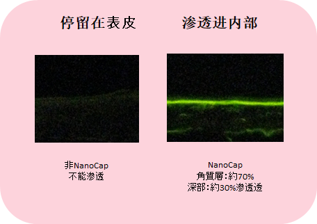 使用NanoCap,使保濕效果得以持續(通過保濕成分(fēn)膠原蛋白的滲透獲得長久保濕效果)