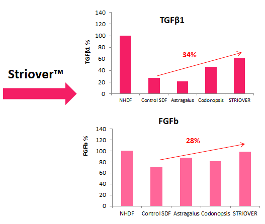 Striover™重新(xīn)激活拉伸紋處成纖維細胞,提高生(shēng)長因子(zǐ)含量
