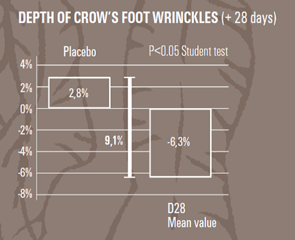 通過對42位志願者進行魚尾紋的臨床測試,證明1.5%Fucoreverse可有效減少魚尾紋深度。
